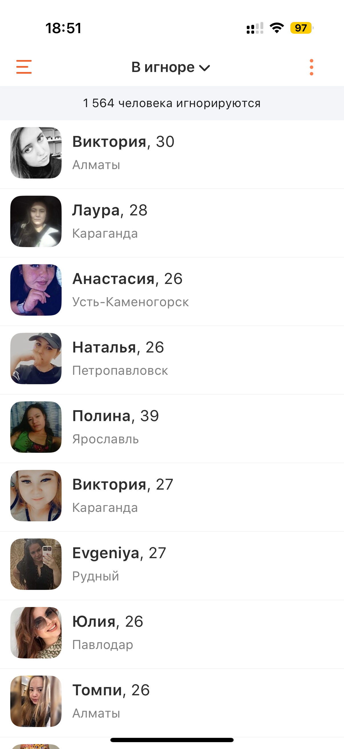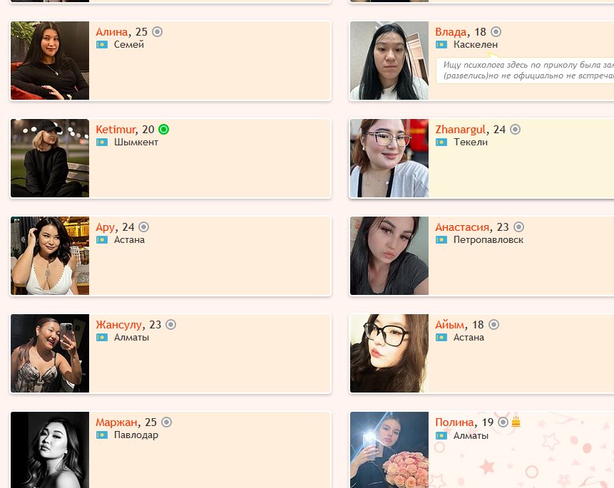 >>10383829 Там ещё видишь в чем фишка, там примерно 1/3 анкет это шлюхи, но они обычно либо без фото сидят, либо фото левые. Я сижу уже две недели, вот список чс. Но примерно 800 – 900 из них это шлюхи, остальные те, с кем общался или от кого не получил ответа. Также блокирую всех остальных каждый день. Поэтому список немаленький. И это только Казахстан. Москву вообще боюсь открывать. А вот города за МКАДом, самое то. Там шлюх поменьше. Настюху из Петропалыча знаю кстати, тоже с ней переписывался, как и с остальными русскими из северной области. Советую сильно не раскидываться с параметрами возраста, так как охуеешь искать нормальную. К тому же те кто сидят без фото, они у меня в основном и в друзьях, так как если фото поставить в анкету, то местные обезьянки уже предлагают деньги за встречу и секс. П не все девушки там этого хотят. То есть видят фотку, сразу давай писать, нет фото, пишут поменьше.