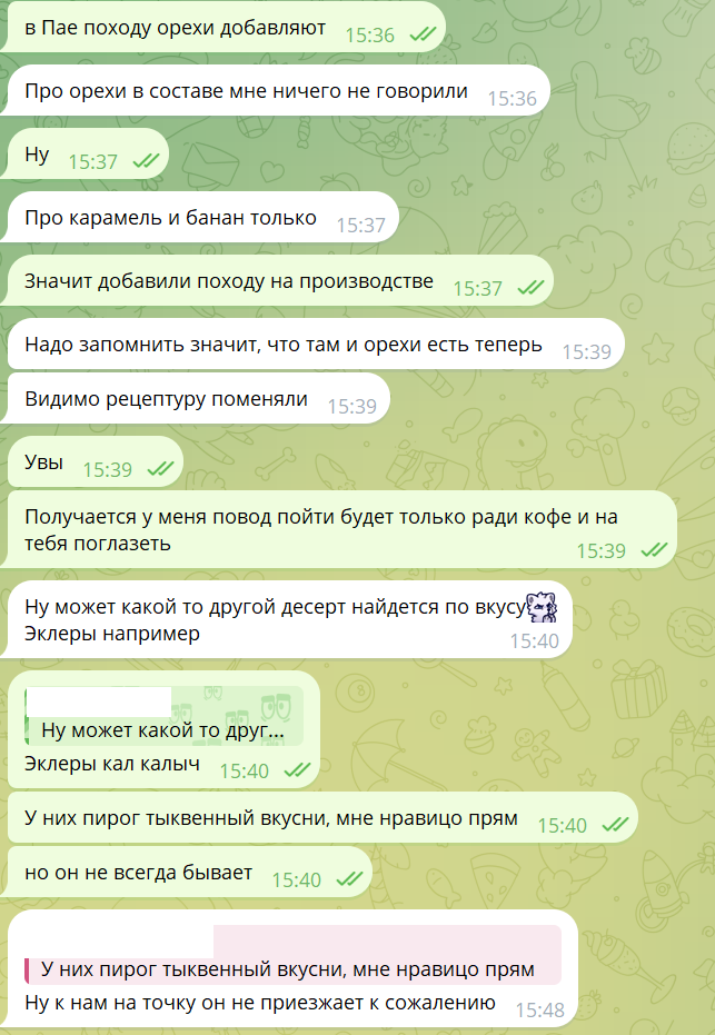 >>10384540 Да как. Попросил тг, чтобы она мне по позиции говорила есть или нет (там просто пирог привозят один конкретный раз в несколько дней). Ну и разговор сам инициировал как то по итогу - так проговорили где то часа 2-3. В самом разговоре был шанс яйца подкатить, но я его благополучно проебал. Да учитывая её низкую инициативность, там наверное ничего не выйдет. К
