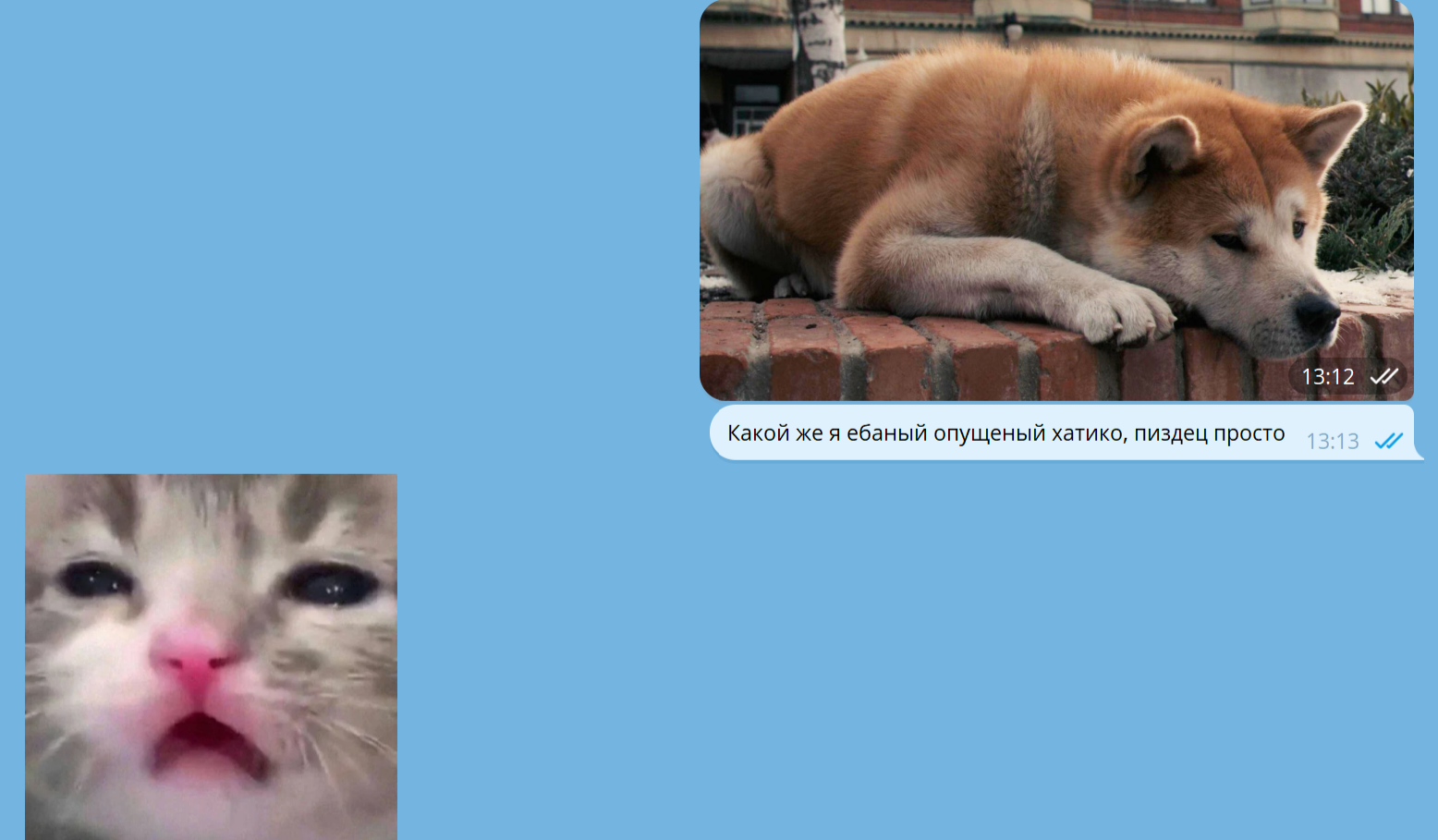 >>10386889 Короч пошла она в пизду. Пусть сама мне пишет. я написал ей показал ей что мы можем переписываться и что она может мне писать. Вот пусть пишет сама теперь. А я поддержу разговор так уж и быть, ответами более внятными чем "неа". Продолжу в том стиле как советовали здесь >Всё так делаешь по превью подумал что ты опять стал кричать что ты не унитаз Спроси стерилизована ли кошка стерилизация помогает отвадить от обоссывания Скажи что осталось совсем немного потерпеть до выходных и она сможет расслабиться Продолжай смолтолк, спроси про деревню, про приколы которые ей пиздюки устраивают От тебя должны исходить поддержка и позитив, что бы она тебе ни писала. Кидай мемчики, создавай вайб