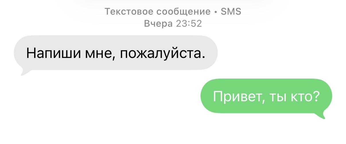 Ну типа, я не понял кто это, написал в тг, просила приехать, но мы же уже не долбаебы, чтобы на это вестись, имхо, значитс как только ей стало хуево, так сразу ко мне за помощью. Спасибо верны, я на эту хуйню не повелся, и, она, словно типикал манипулятор, просто перестала писать, хотя в чс я ее не кинул, удила чат)