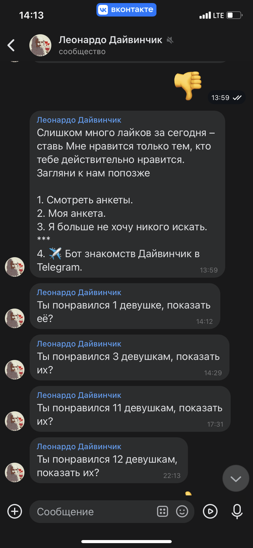 >>10399174 >вк знакомства Сейчас ради интереса запустил это. Походу реально развод для покупки премиума. Взаимки есть, но большая часть сидит в скрытых лайках(пик), которые не видно, пока не купишь))) >>10399537 Так созваниваются перед встречей же. Какая работа? >>10400059 Насчёт теневого не знаю, не сталкивался. Но прилетал бан с уведомлением. Отписал в поддержку-разбанили сразу >>10400025 Хуевая шутка если честно.