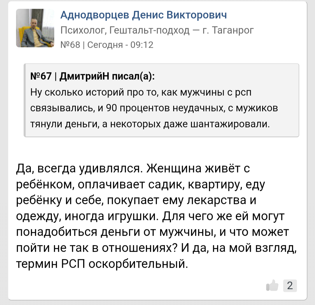 У нее ко мне отношение было не плохим, но уж очень все напоминало о том, что ей просто хочется семью и детей и я, как ей казалось на тот момент, подхожу на такую роль. То есть, я не как сама цель, типа быть с любимым, желанным, а использовать меня как средство. Было очень больно осознавать, что на край света она со мной точно не пойдет. Когда она начала понимать, что я тоже не просто тупой бабо-раб удобнич, а у меня есть понимание ситуации, то отношение ко мне изменилось в худшую сторону. Причем, даже на самом примитивном уровне. Вот, например: меня зовут Дмитрий, она иногда, но называла меня Димкой, а после стала всегда без исключения называть только Дима. Вроде бы мелочь, но как ей удавалось хотя бы случайно не проявить хотя бы минимальную нежность? Про секс, объятия я уже писал, что она не бывала инициатором, но после вообще даже отвечать на мою инициативу перестала. Как биоробот с программой, а не человек. Знаю, что женщины даже когдаа злы на парня своего, все равно сдаются и сами идут на контакт, подойдут, обнимут, скажут, мол, давай мириться, а она даже вне ссоры ко мне холодна всегда была. Я, когда мы только начинали отношения, думал, что у нее нет демоверсии. Оказалось, что та минимальная хуйня, что у других девушек просто базовая штука, то у нее это и была демка. А без демки она посто как приятельница соседка какая-то