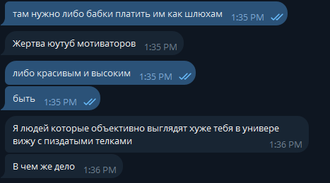 Короче, всем читать Новосёлова, Протопопова и Дольника. Инцелы, откройте глаза, начните учиться, перестаньте блуждать во тьме! Без этой базы, вы ничего не поймеие, и будете поддаваться на траленх норми пиздорабов