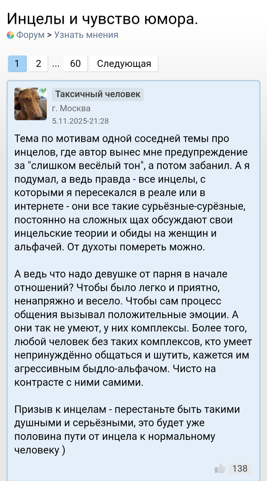 Просто типичный нормис который пришел высмеивать инцелов