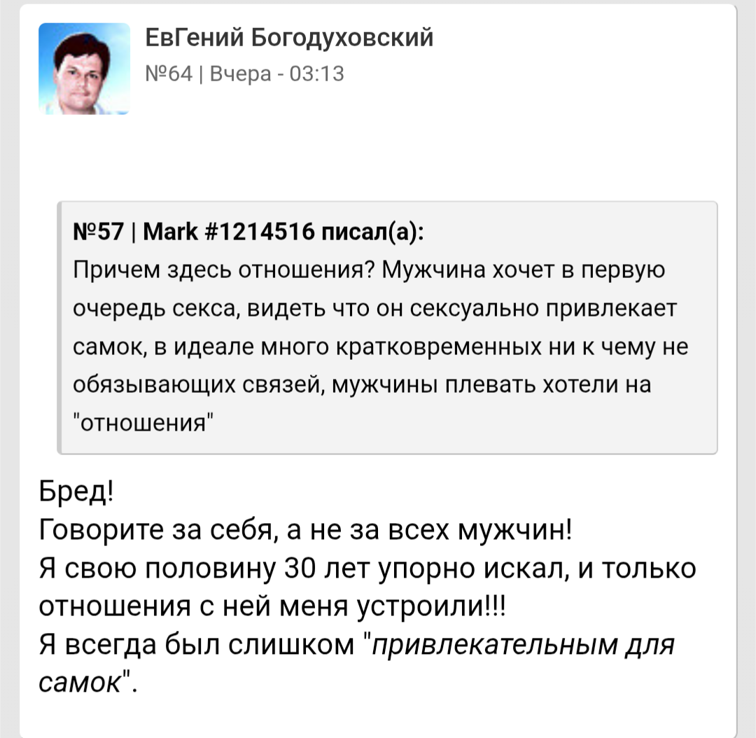 Чтобы не видеть как всрато на него реагируют бабы это реально надо иметь нулевой эмоци-анальный интеллект и в жизни с живой женщиной не поговорить