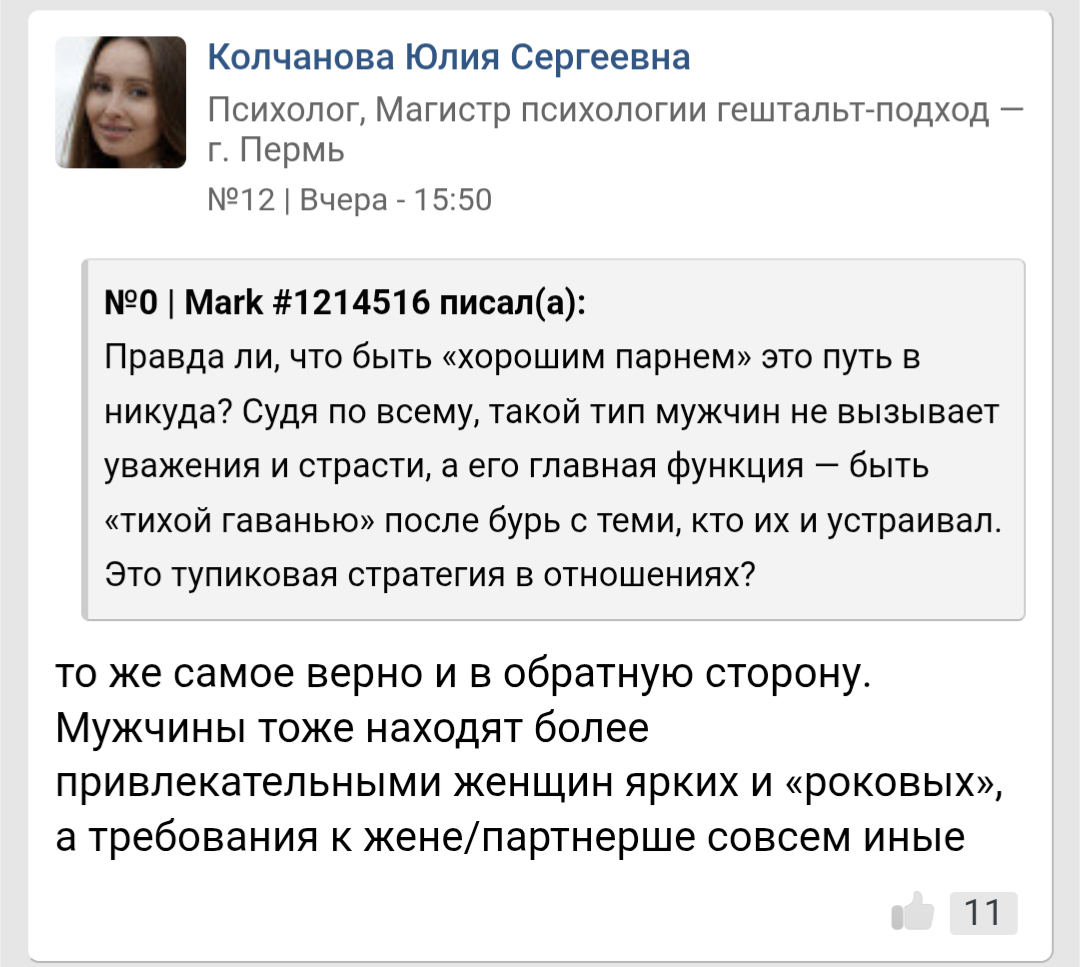 Из всех своих подкатов, да и в принципе наблюдений, заметил, что у умных тянок все мужья и парни повально додики. То есть я могу не знаю, наверно даже ляща отвесить - натравит кого-то (ебыря мб), потихому обратится куда-то, но даже не подумает своего несчастного на такого же инцела бросить. Смешно конечно.