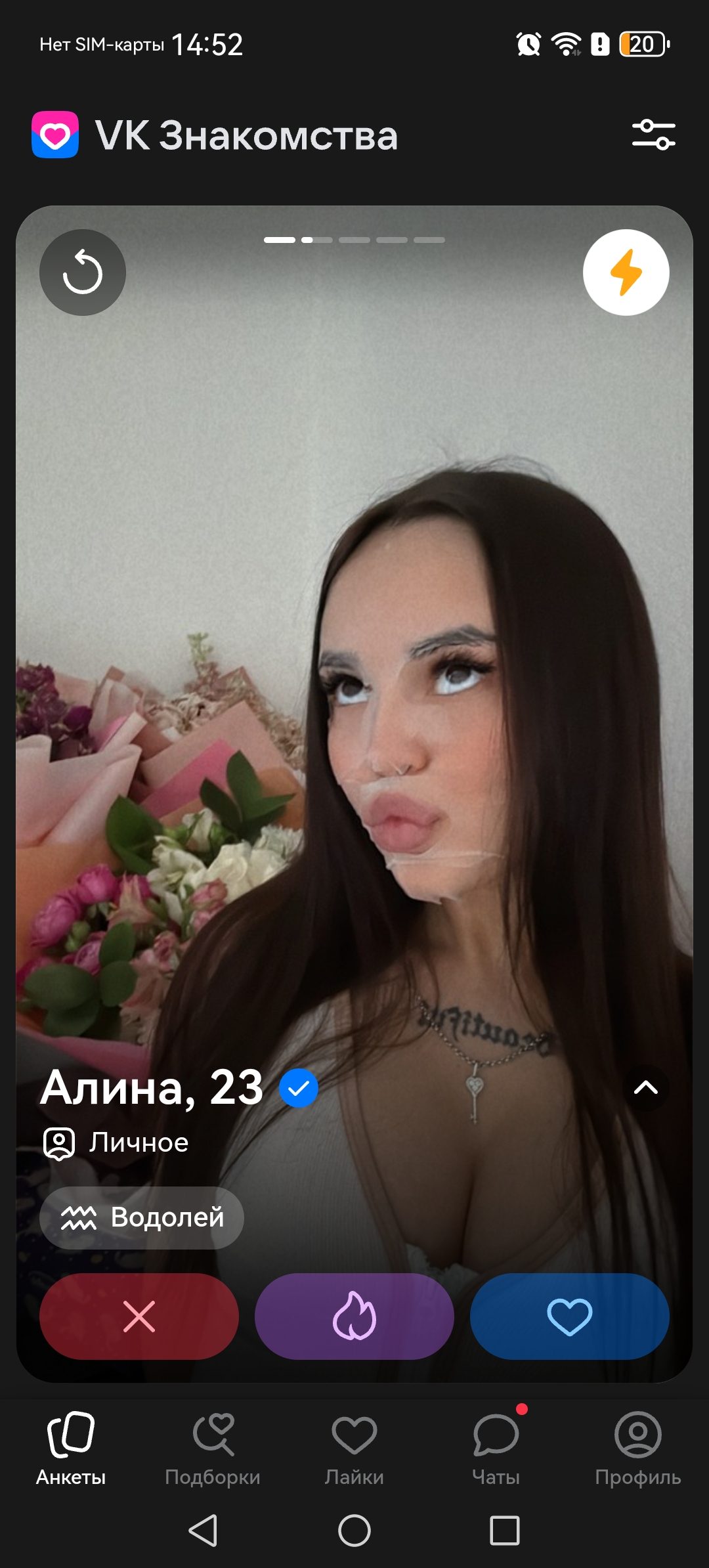 >>10478433 У меня так же, но всего лишь пару общений и ноль встреч. Конверсия нулевая, все эти мэтчи, просмотры, лайки хуета. Видимо надо покупать премиум.