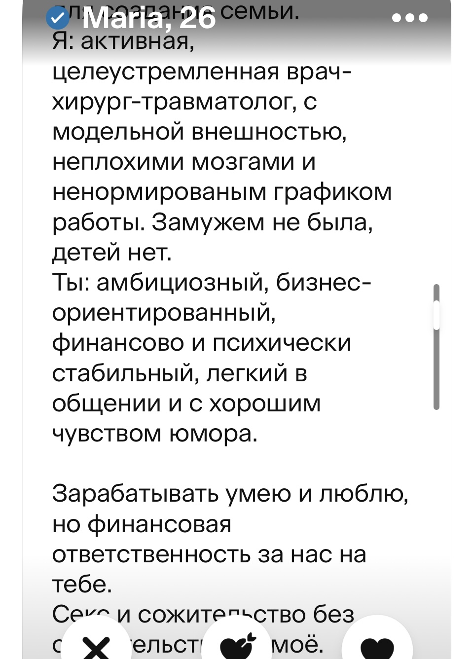С этим как раз проблем нет. Ко мне бывшая всё никак не допросится но нуеёнахуй. Плюс еще в том году встречался с заведующей онкологическим отделением 46 лвл, дропнул ибо старуха и это не скрыть. Молодую хочу.