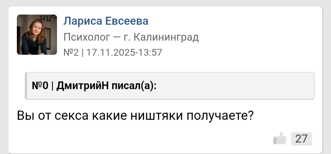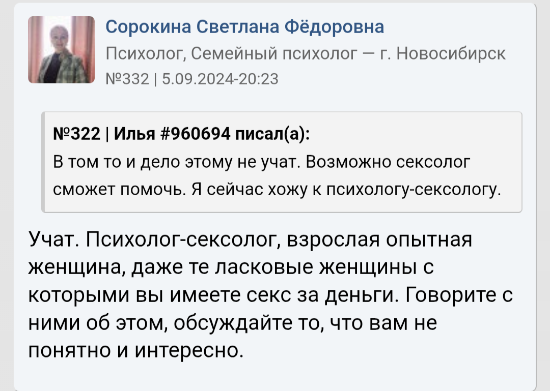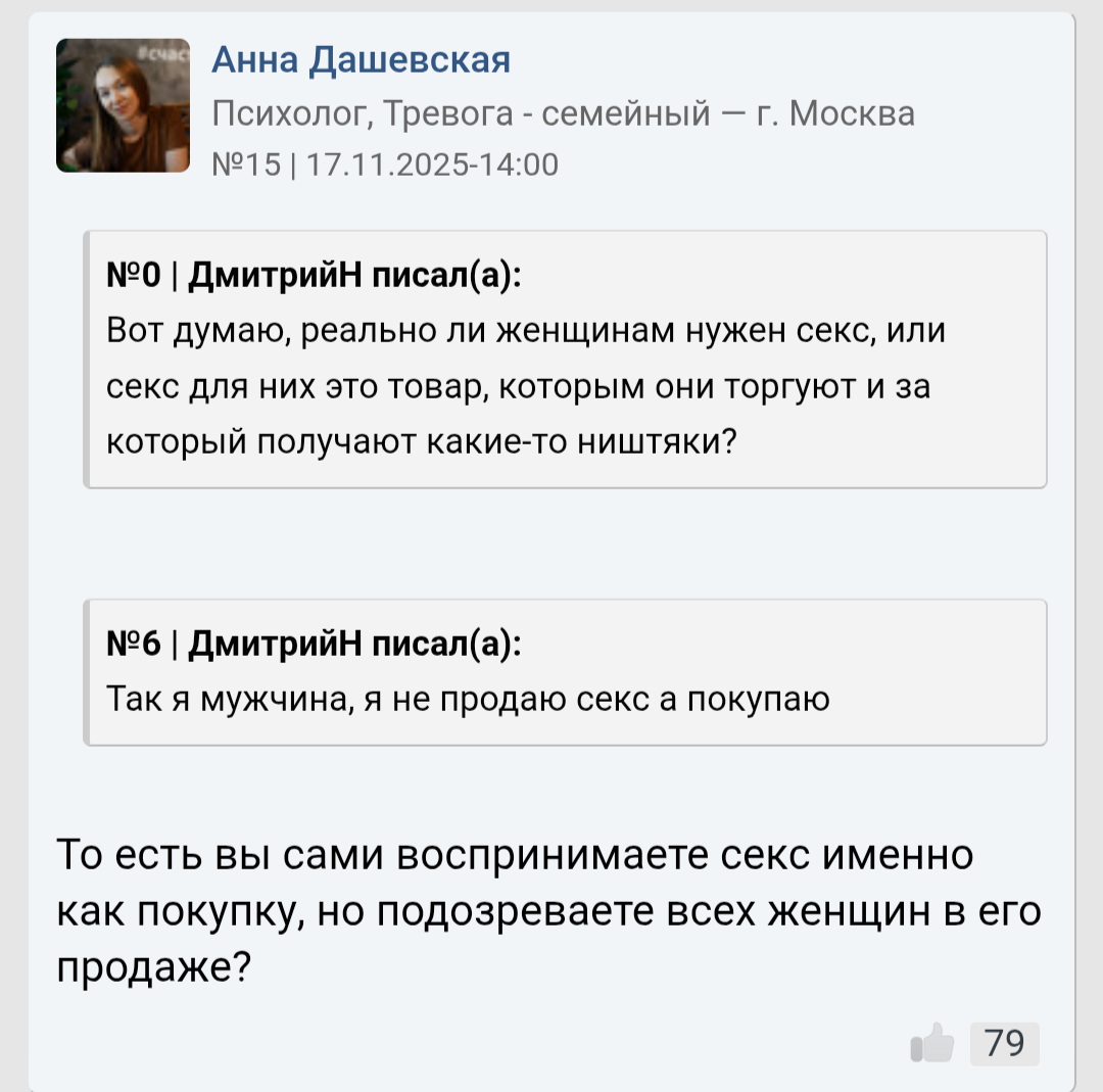 3. На контакт идут только те, у кого в жизни явно проблемы с мужьями/парнями или по финансам.