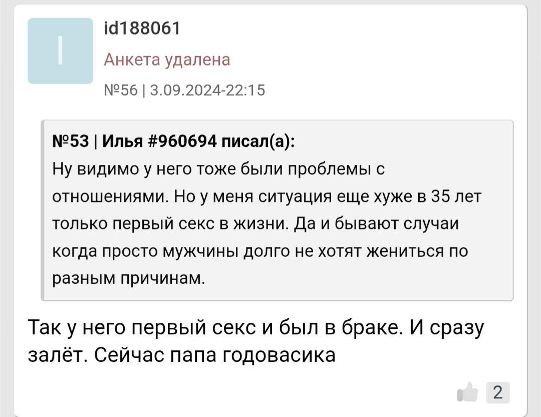 привет аноны, я тут залеттный, иногда читаю инцел тред. в голове не укладываеться как я будучи сухим спортиком с чедовнешкой не лутал тянок до 23 лет. даже 0 раз в отношаче был