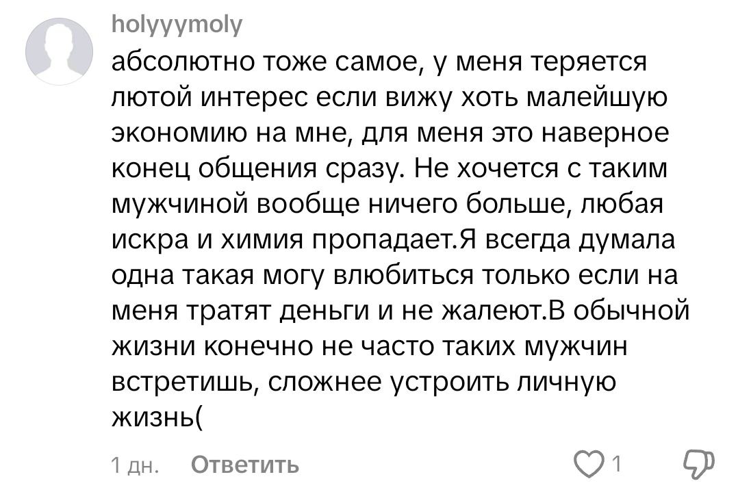 Сексуальное возбуждение ОЧЕ СЛАБО коррелирует с достатком. Если тня тебя хочет, то она хочет ТЕБЯ, не твои деньги, не оплату её хотелок, не поездки на Мальдивы и трешку в Москва-сити. Она хочет ТЕБЯ, где угодно, хоть в падике, хоть в твоей съемной однушке, хоть в лесопарке на расстеленном покрывале или в гостинице на казеной кровати. Остальное - бытовая проституция. И тут такое дело.