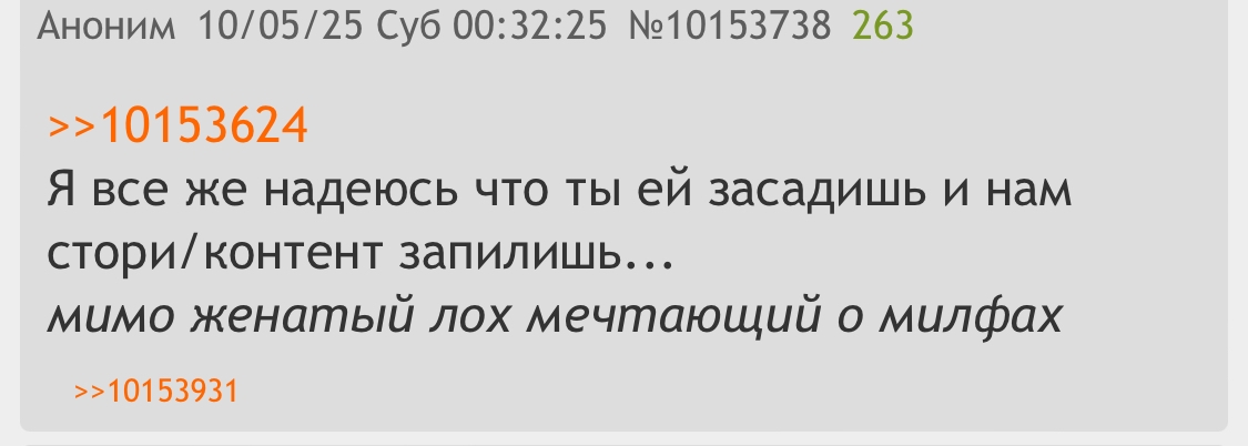 Бля такая же хуйня , женатик 29 лвл, но пиздец как прет от милф. Была парочка теть, с одной даже листву скинул при имеющейся тян по пиздюковщине, на то были свои причины по которым я оправдываю себя, со стороны морали имею ввиду. Вообще как бы не понимаю почему от них прет , допускаю то , что я являясь большим моралистом в плане измен (да да , хотя и сворачивал несколько раз налево, я об этом кроме как здесь не рассказывал никому , да я этим и не горжусь , но сука вспоминаю с удовольствием)оправдываю это тем что ебля таких теток не считается , тип они стремные и все такое :/ Общий язык на работе с ними изи нахожу и легко будто бы мог склеить но бля я не свободен , и из этого есть нюансы: Маленький город пиздец 100к. Хз как ставить свою фотку на аву на сз бля. Да и в целом можно списаться на сз с теткой без фотки попросит скинуть ей мою фотку , я скину а там подруга тещи или матери моей , и все пизда. Если ты тут можем списаться в тг на общую тему. >>10153624 Ps в каких разделах я только не встречал милф треды , везде унылое говно с фотками топнедосягаемых милф с онлика, а здесь же нашел тот самый ламповый. Спасибо вам ребята, не теряйте его!