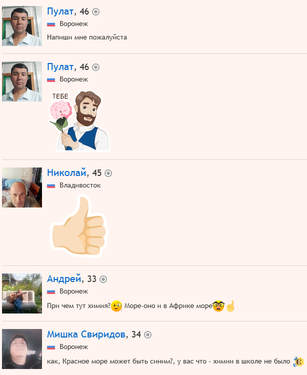 1) Вы как-то вычленяете тех, кто там за поебушками, или просто писать всем, кто нравится, что интересует периодический секс? Доебывать нежных цветочков, которые ищут там мужа, судя по подписи, я конечно не буду, но тем не менее.