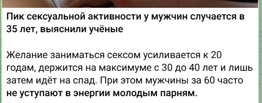 В инсте регулярно попадаются рилсы тёток 40+, которые все как одна говорят про пик женской сексуальности в их возрасте и про то что мужики после 35 теряют в качестве спермы и вообще секс с ними ужасен, так что эти тетки переключились на молодых парней. Это они коупят так?