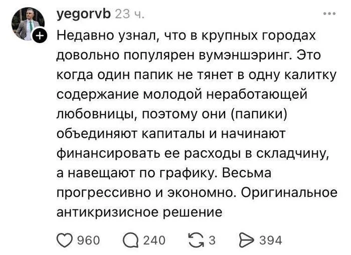 Ты сказал максимально четко и верно, товарищ анон. Женатики ищут там секс с молодыми тян без мозгоебства, платя им за отсутствие перспективы и отношений.