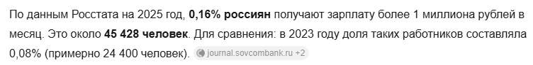 >>10453983 Твои пики учитывают только заРАБотную плату В рф только по официальным данных сотни тысяч долларовых миллионеров В неофициально их Х2 от заявленного