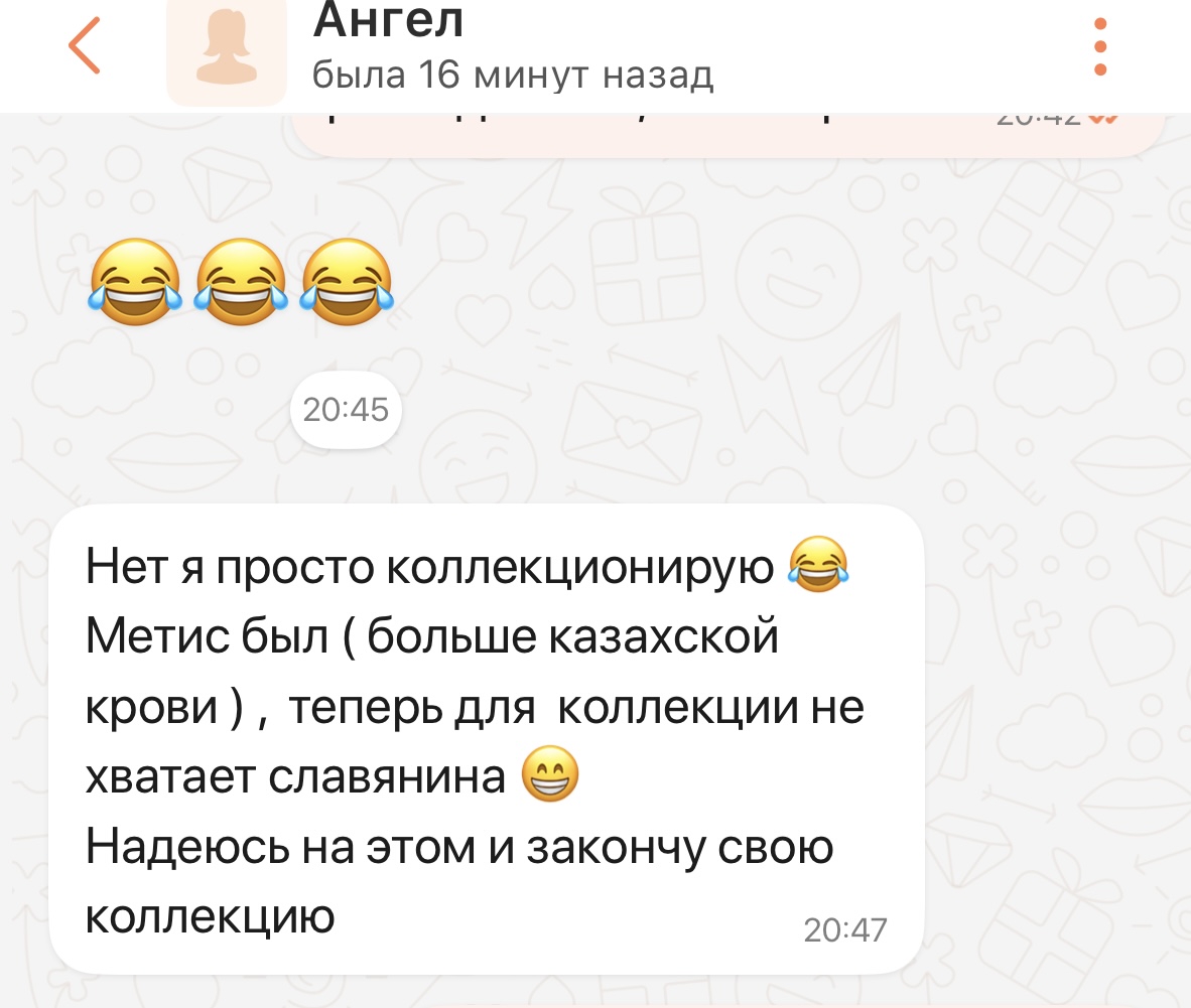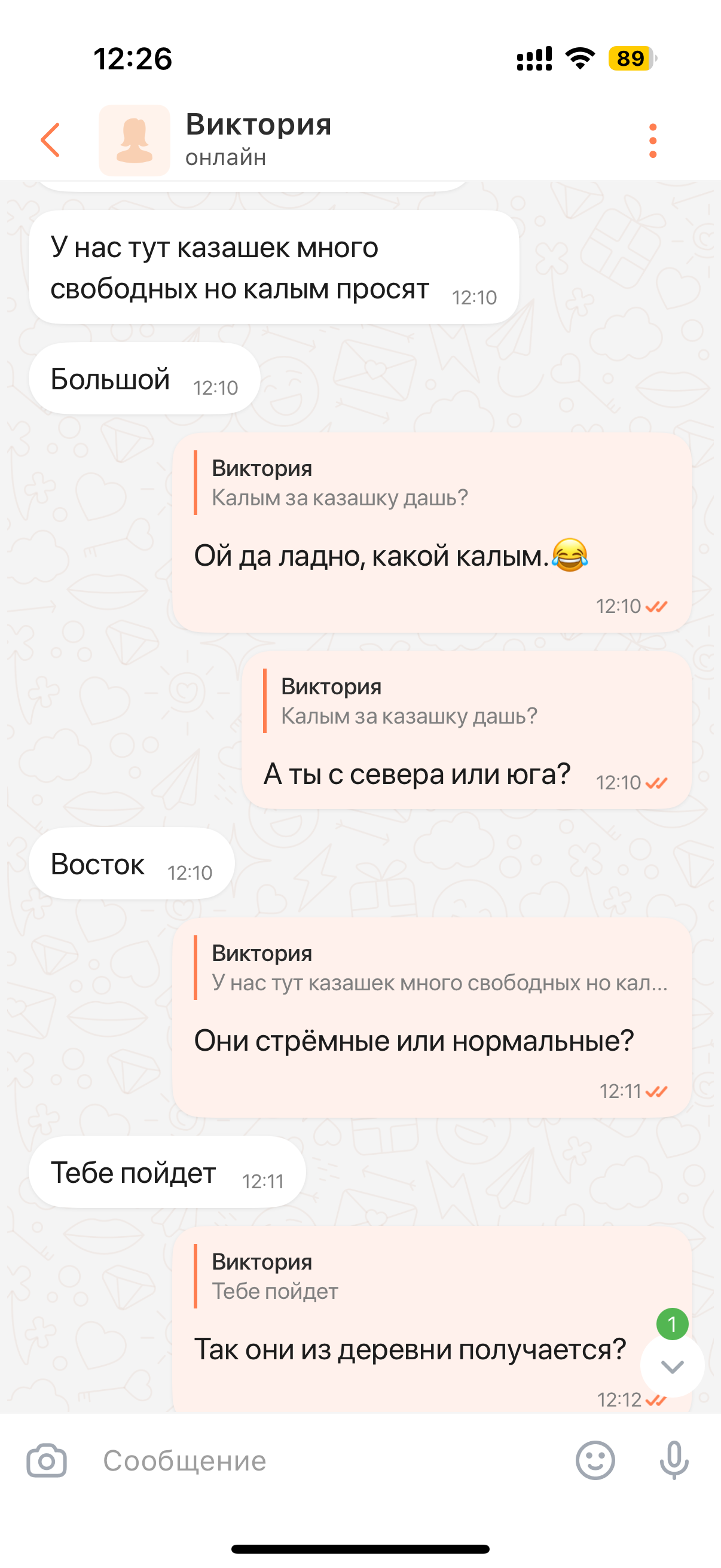 >>10357441 (OP) Ну ты посмотри что она пишет. Анон, поехали в Казахстан, хули ты голову ебёшь как и я? На хуй этих узбечек, и прочих. Зачем тебе филлипинка, которая русский язык не понимает и с которой возится долго придётся? Ты смотри какая цена за казашку из деревни, которая тебе носки будет стирать и бешбармак с кумысом готовить. Для русских дешевле. Это кстати Уральск, восточный Казахстан, там деревенские одни, то что нужно. То что доктор прописал для инцела. Член у казахов всё равно маленький, деревенской на твой рост поебать вообще, если ты не ниже 170, русский понимает, хозяйственная, что ещё надо? Я щас на полном серьезе говорю, пацаны, билеты хуйню стоят.