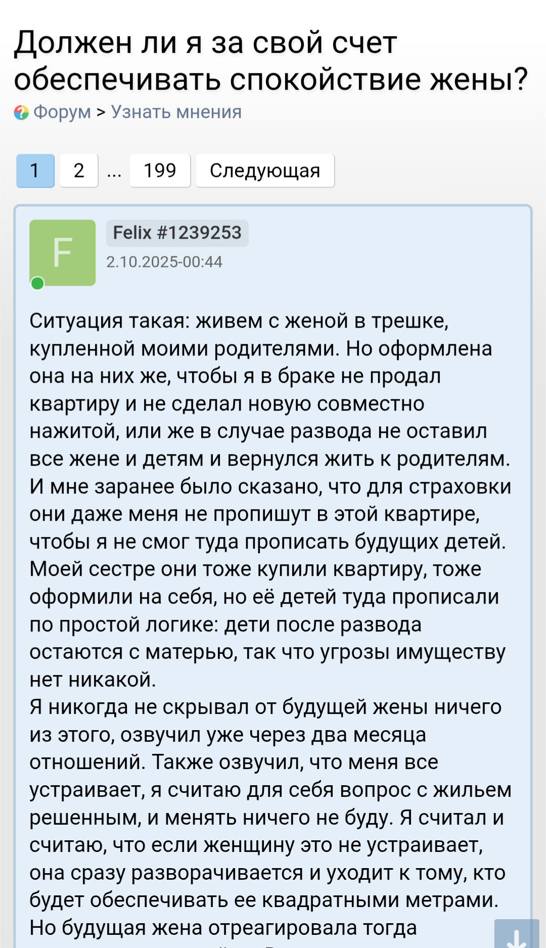 >>10358703 У тебя гавно в бошке, с таким подходом ты просто на алименты попадешь и все, долгих отношений у тебя не будет. От меня уходили или просто сливали бабы хотя разница в доходах была 10х
