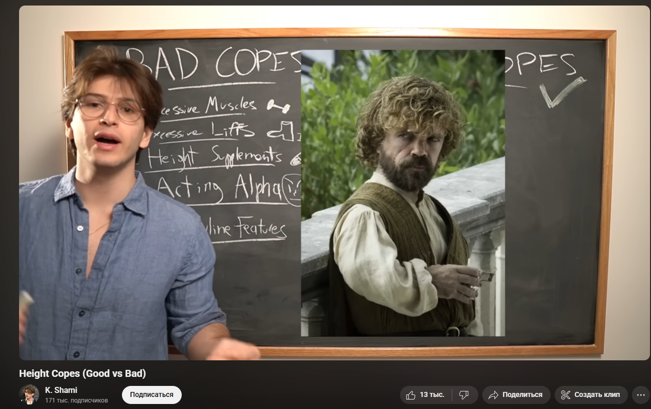 Общество через СМИ, кино, рекламу активно продвигает образ высокого мужчины как успешного, статусного и привлекательного. Низкорослый мужчина часто сталкивается со стереотипами о меньшей мужественности, слабости или недостатке авторитета.