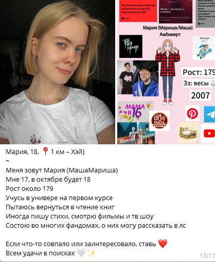 >>10367782 Че-та тяжело и долго искать девушек, соответствующих критериям: не закрытый профиль, открыта личка, нет парней/детей, не жирная, не стейси… Товарищ мой какую-то мышару без друзей отрыл где-то.
