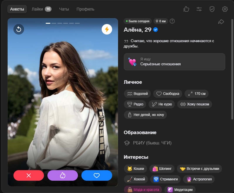 Вчера листал пока не пошли анкеты из пригорода. Сегодня анкеты из пригорода пошли почти сразу, может через сто анкет. Сколько ждать чтобы опять всех начало показывать? Думал они пофиксили эту поебень.