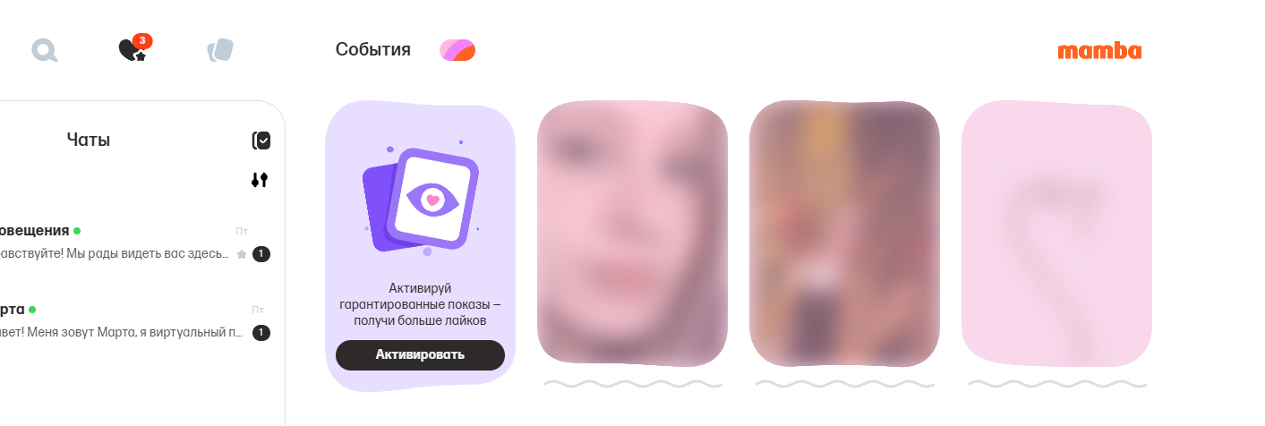 но как определять на мамбе за день получил около 8-10 лайков, через код элемента палю лица девушек и когда начинаю смотреть анкеты, то 1;1 девушек не нахожу как вообще работает показ девушек и сближение партнеров или только через випку