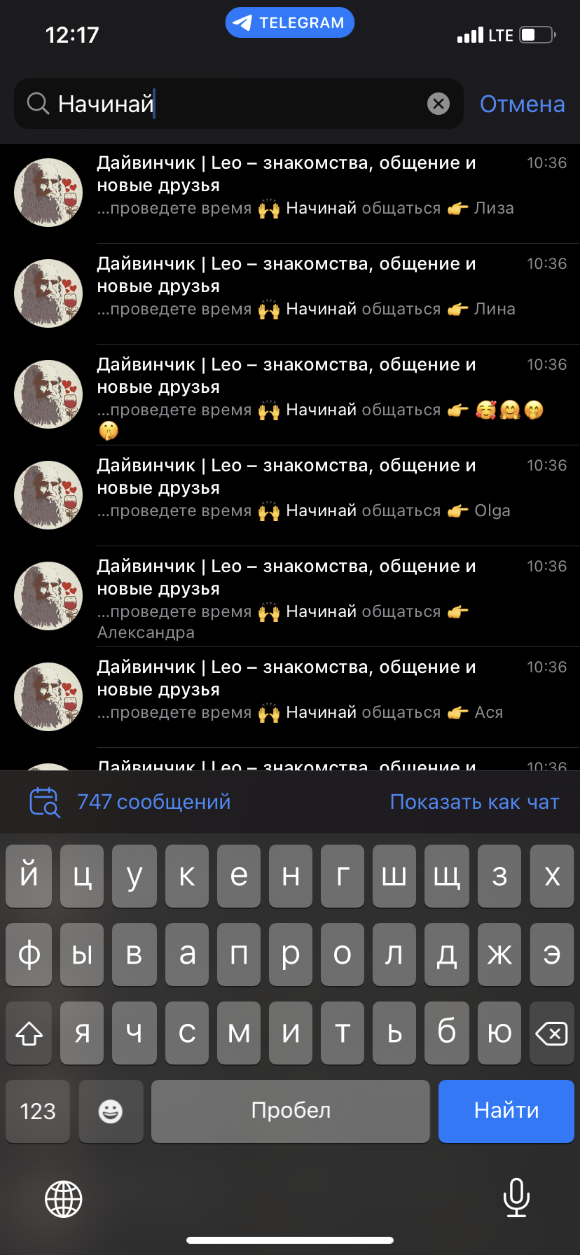 >>10365882 С 10 августа периодически пробую Дайвинчик. После реги был один лайк от скамера и три лайка от безаватарочных (одну случайно нашел в ВК - оказалась ультражируха). А потом гробовая тишина.