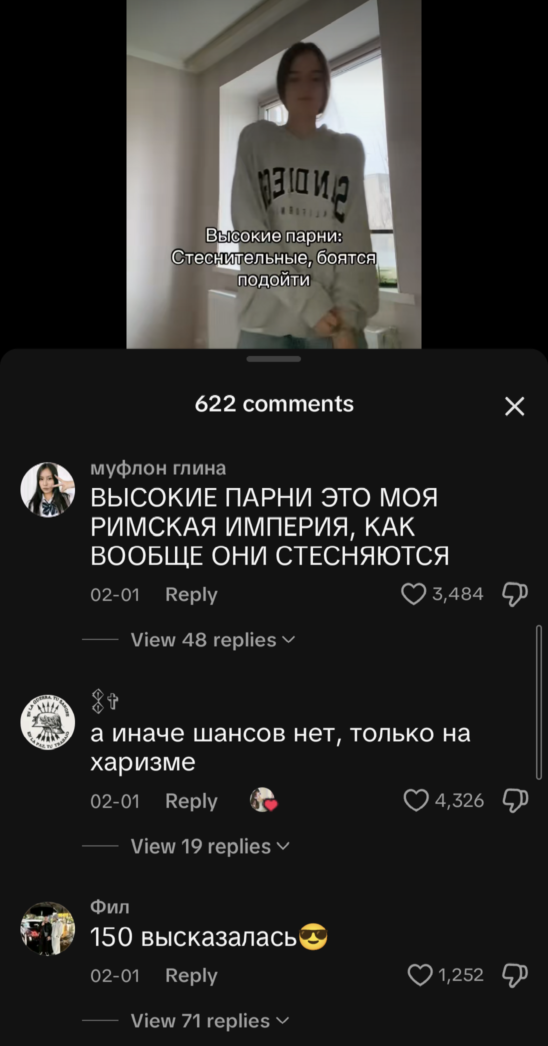>>10382377 Не гори, я не троллю и правда почти не встречаю мужиков выше себя, сколько лет хожу по улицам столиц. Средний рост почти у всех. Искать самца высокого актуально только для полторах чтоб у детей потом был рост нормальный.