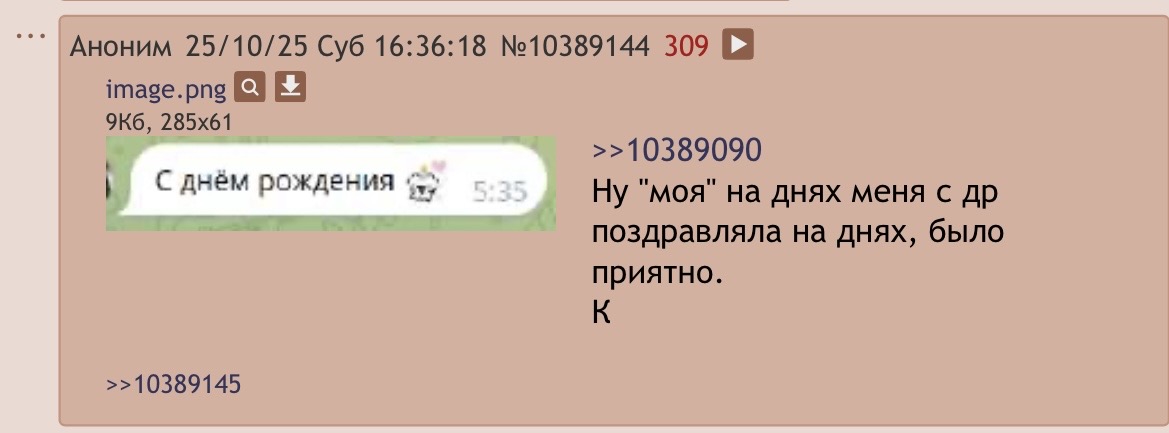 >>10389144 Ты не читал тред? https://2ch.life/sex/res/10380920.html Вот этот чедо-инцел усирался полтреда что если тян на парня не похуй, то она б его поздравить стремилась с самого утра как можно раньше, чтобы среди первых быть поздравивших и вообще должна засыпать с мыслями о челе и проснувшись сразу писать поздравления, ведь только так она покажет что думает о нем и ей он действительно не безразличен и выделяет его как особенного, а не просто френдзонит. А тебе вот в около 6 утра написали, значит думали о тебе, ага.