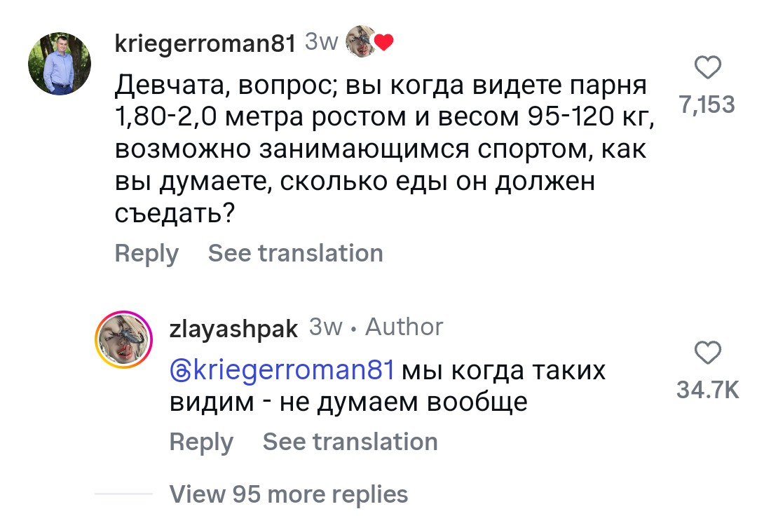 отсюда же бабы с излишней худобой, нужно филе на костях, а не кожа, да кости и маслы в 40+ кг под соусом, что ты фиотняшка без мяса