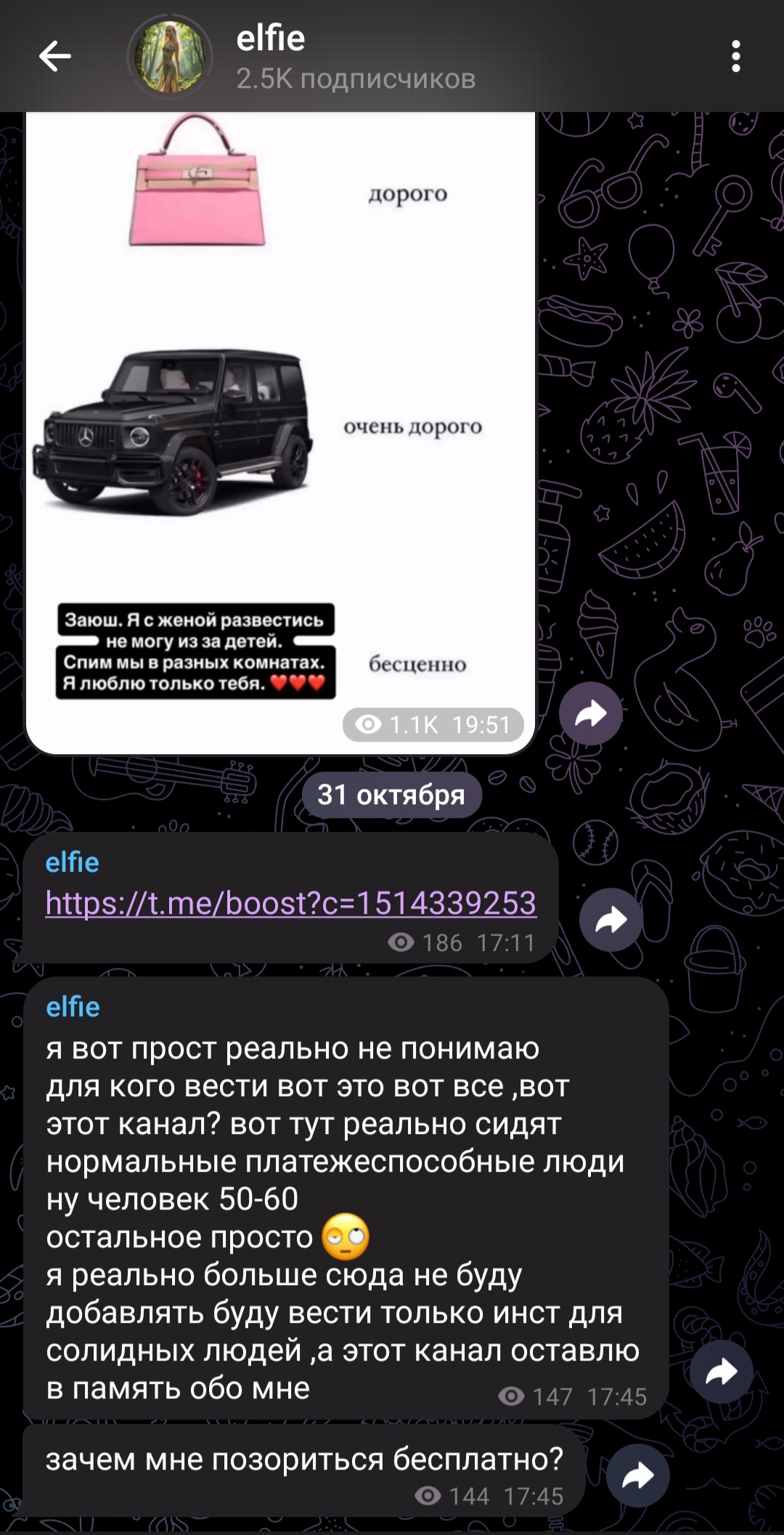 Все, что надо знать о шлюхах: "Идеальный гость это..? Тот который не смог приехать, но все-равно отправил 100к за встречу." с ТГ шлюхи.