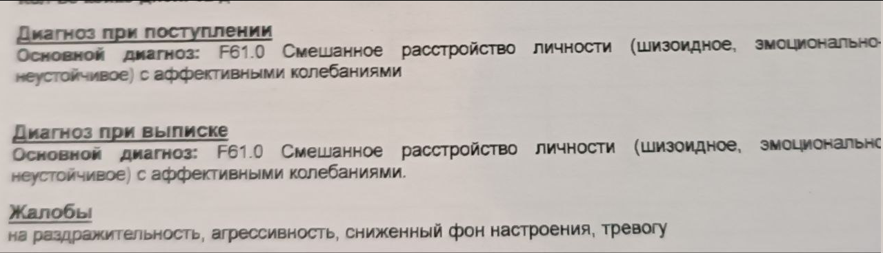 >>10406138 >Ты же ебаный психопат, я же улицу не могу перейти на красный. Если что я псих, который себе руки, ноги режет там + истерит и параноит 24/7 У меня не анти социальная психопатия если что Кидал фотку с диагнозом выше