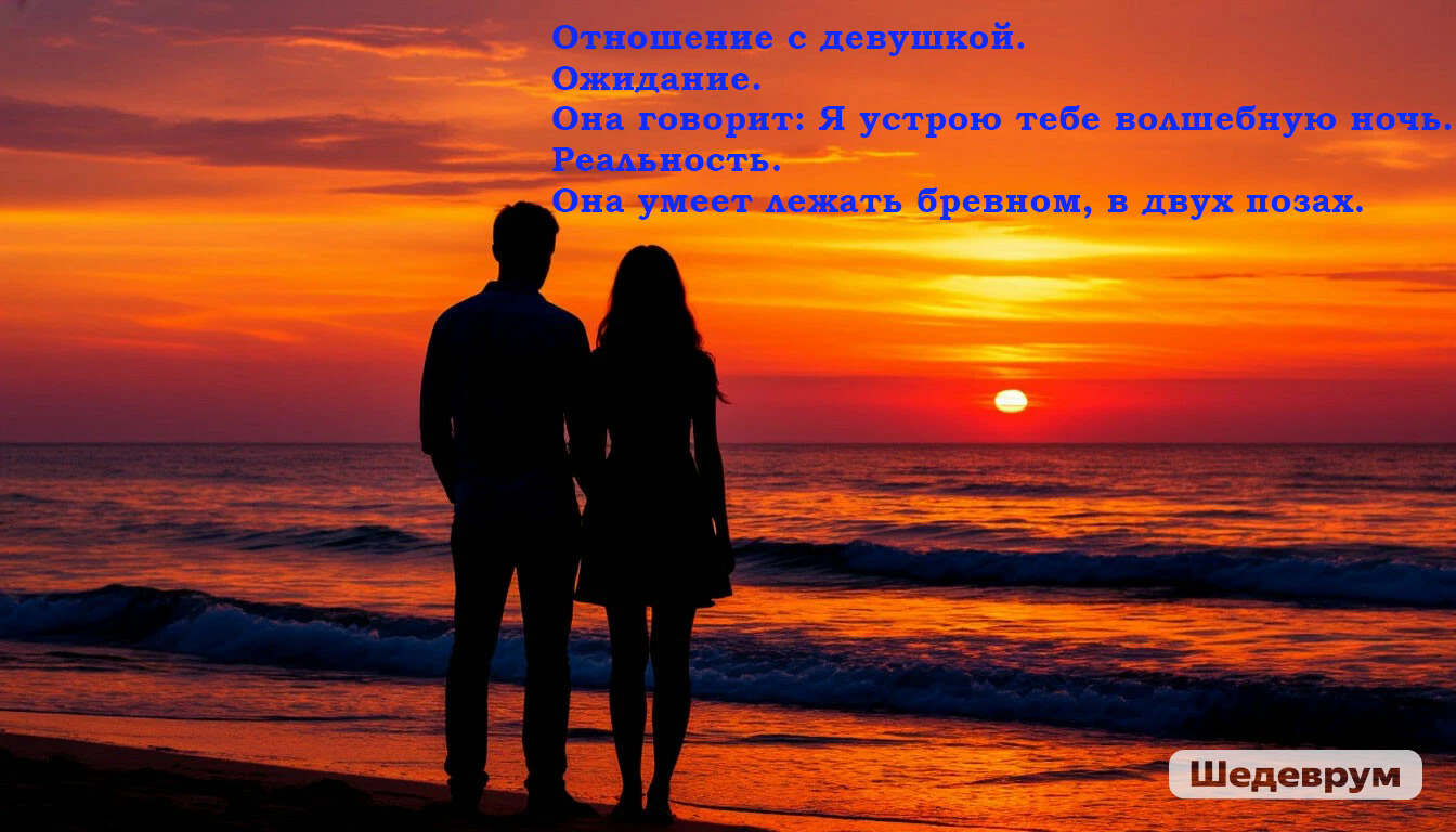 На основе отношений с десятками девушек. Я ни в коем случае не утверждаю, что это случается с каждой девушкой или с каждой второй. Изображение создано искусственным интеллектом, текст мой. Был некоторые комментарии в разных пабликах, по поводу отношений с девушками. "А я спустя двадцать минут просто плюнул ей на спину, потому что устал рубить это бревно."
