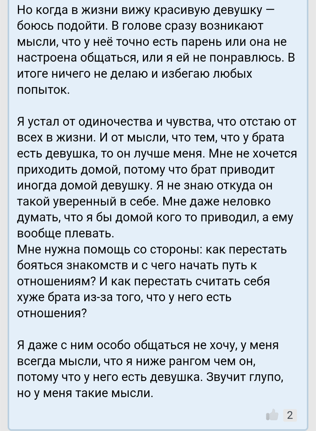 Сап, двач. Как бороться с апатией? Я классик скуф-задрот 30+ лвл, живущий в своей конуре. В прошлом у меня были очень редкие и непродолжительные отношения с весьма скудным сексуальным опытом. Тянки мной интересовались, пока я был молодым и плюс-минус худым, а как в универе начал жиреть, так интерес стал отваливаться.