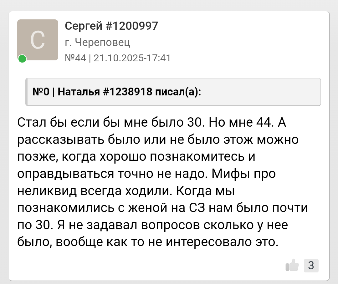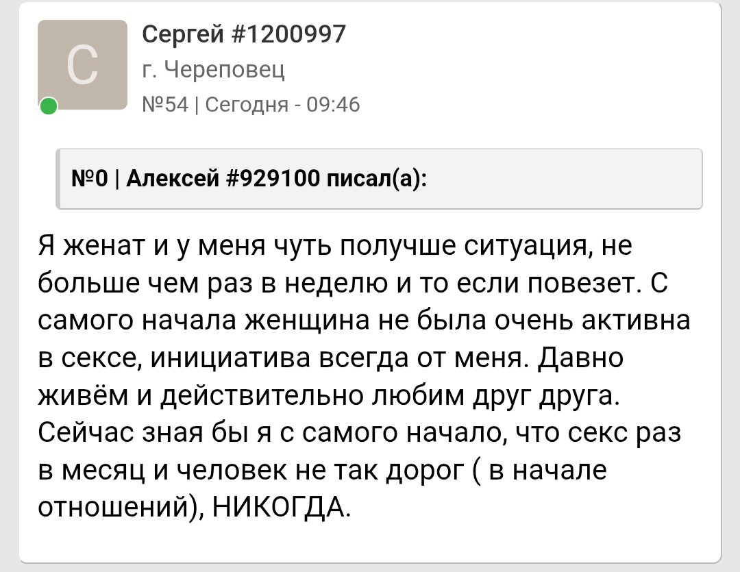 >подливают тролли а-ля Женатый Фрик. Советы искренние у меня. А про жену лучше не писать лишний раз, чтобы людям соль на рану не сыпать…