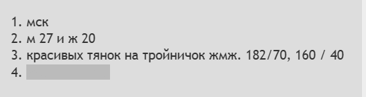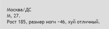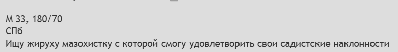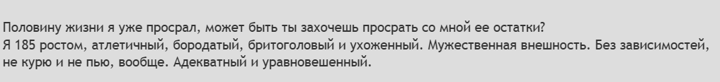 >>10422898 Ну давай скинь, что ты пишешь в анкетах