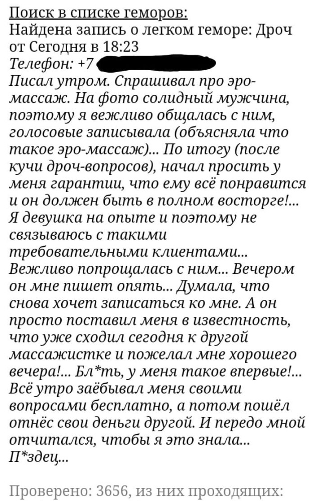 Все, что надо знать о шлюхах: "Идеальный гость это..? Тот который не смог приехать, но все-равно отправил 100к за встречу." с ТГ шлюхи.