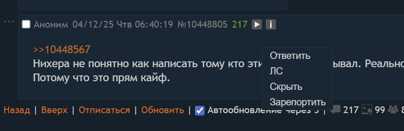 > Ты приперся в тред который создан не тобой, посвящен не тебе И что ты сделаешь? Как обычно расплачешься?