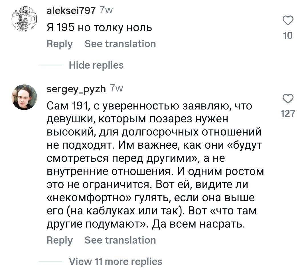 В-третьих, вот это «альфач/чед обязательно высокий» — мемная карикатура из инцел-реддита. В реальной жизни «альфачом» считается тот, у кого социальная уверенность, навыки общения, харизма и способность брать ответственность, а не тот, кто на 12 см выше соседей по маршрутке.