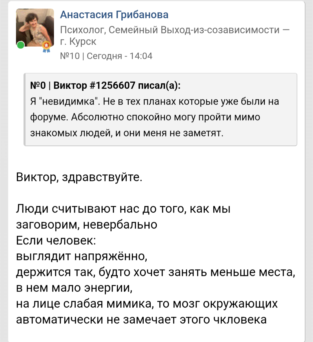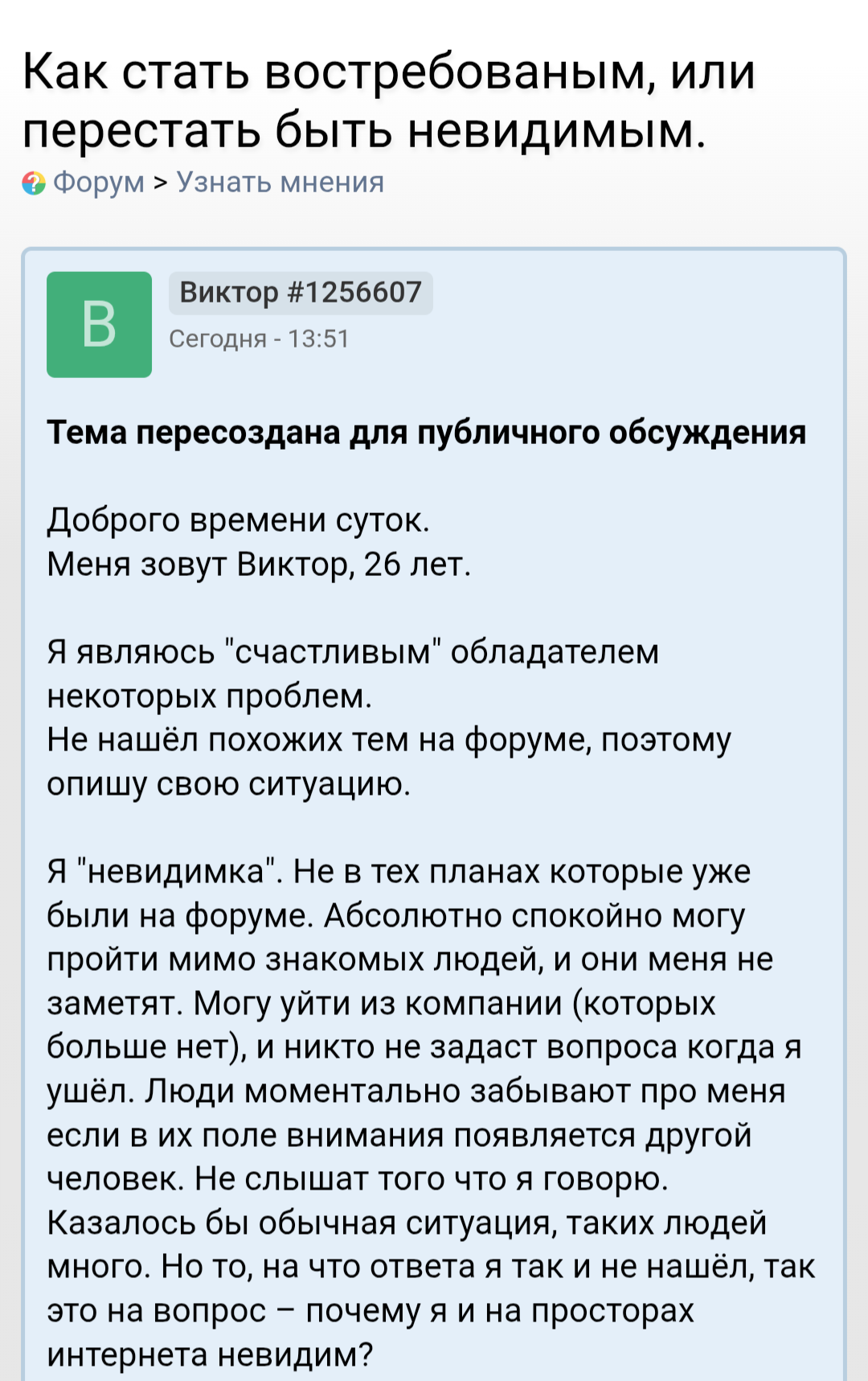 >>10425122 Нет не обижаюсь. Потому что на СЗ когда фотографии выставлял - было по нулям. В моём понимании всратый ебальник это не помеха для полноценной жизни. А вот рост, субтильность, здоровье и может быть ещё возраст - ещё как помехи. Вот они реально руинят. К