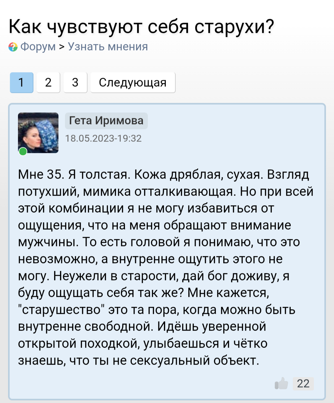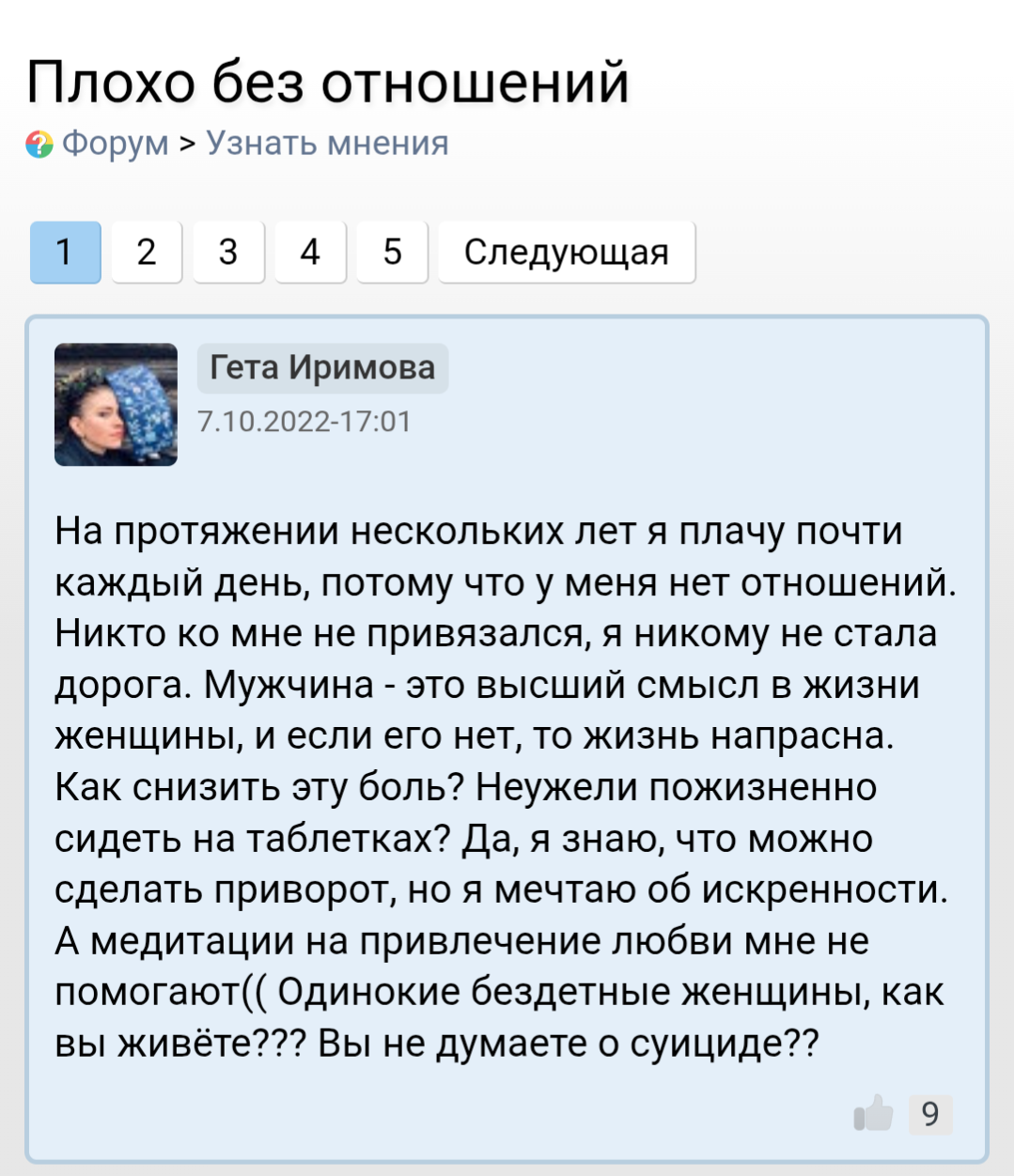 Интересно, сколько таких, как она - никому ненужных женщин немолодого возраста? У нее все темы пропитаны болью и тоской. Как бы вот с такой познакомиться