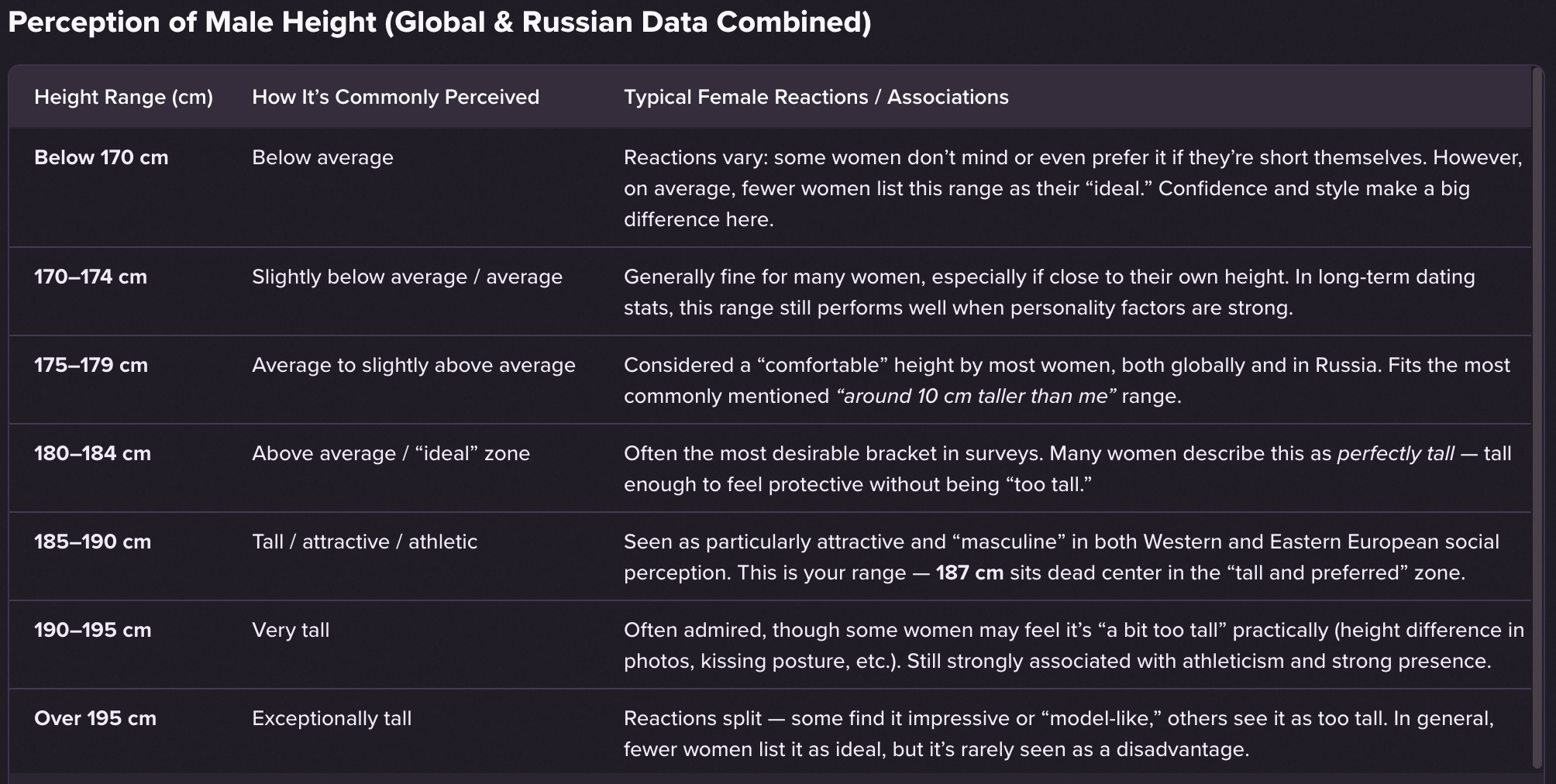 То есть да, рост — это плюс. Кому-то он важен, кому-то нет. Но делать из этого «базовую прошивку человеческого выбора» — это просто попытка объяснить сложный мир примитивной схемой. Такой подход больше успокаивает тебя, чем отражает реальность.