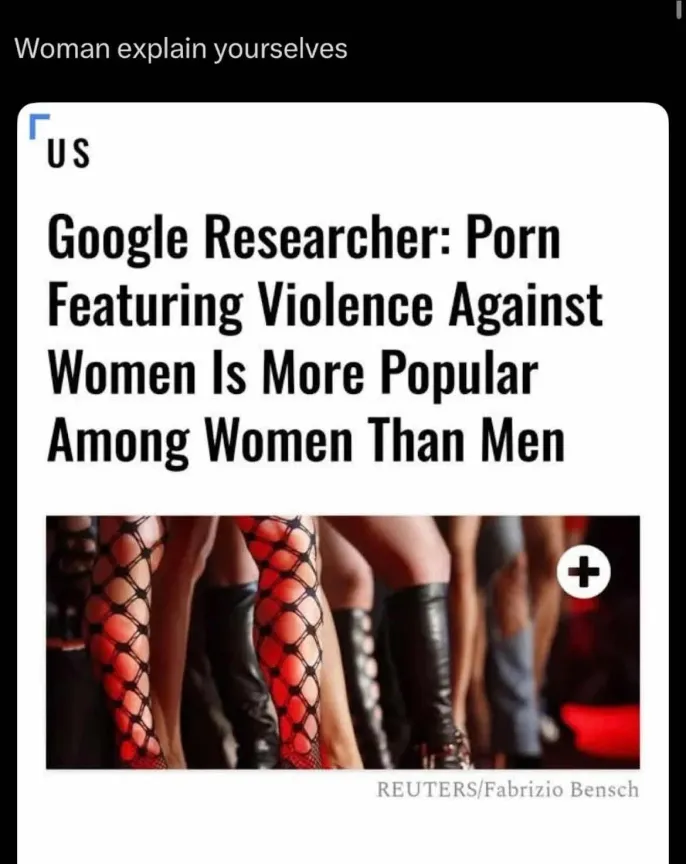 >>10426575 Хуйня которая додумала за всех женщин, кого они любят и не любят заистерила от правды, вы без надуманного образа мучеников тупо подохните, такой тип недолюдей