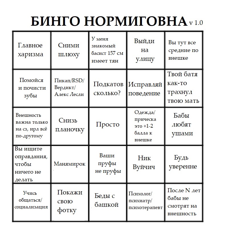 13 просто бывает только у чедов 14 правда, но только при прическу, на одежде далеко не уедешь 15 только если ей нравится чел 16 оправдания подкреплены 17 манямир отчасти 18 мой пруф это моя внешность 19 глубоко похуй что у кого-то нет чего-то что есть у меня 20 уверенность очень плотно коррелирует с внешним видом 21 социализация хуета без внешки, еще раз тебе надо изменить твой скин, прям как в игре 22 тут понятно 23 петля одно в другое 24 коупинг 25 пиздеж