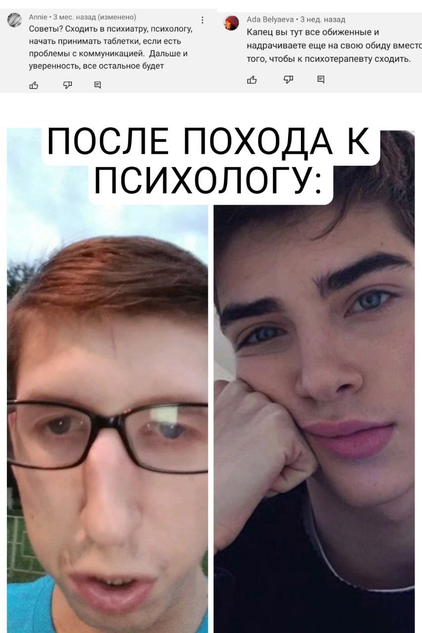 >>10426362 Ну, жто наверное лучше чем друзья, которые постоянно качают тебя копиумом "да ты нормальный, просто ссышь и не знакомишься, да я твое фото знакомой послал, грит норм чувак, да ты со мной почти одного роста, да у тебя норм рост че ты паришься" да, один женат, до этого неплохо так блядовал, лмству сбросил в шараге. Да, другой со смазливым ебллом, социоактивный, с харизмой, меняет тней спокойно и без мозгозаебонов. И другте им кажутся такими же как они