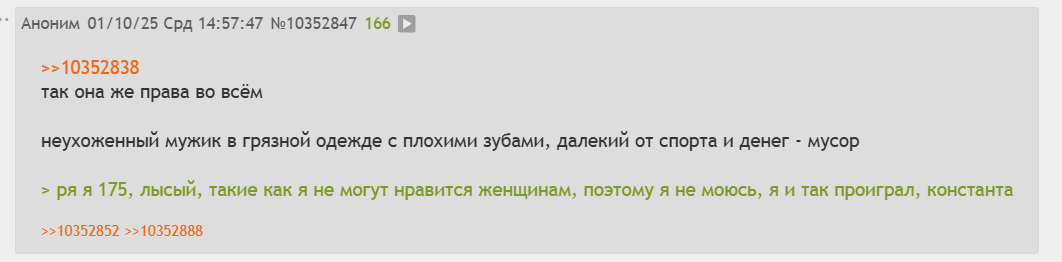 Вообще я сам не инцел. Ну в смысле как, не придерживаюсь идеологии инцельства. У меня идеология радикального само-эйблизма тип я не нравлюсь тян потому что я пик-релейтед. Внешка не внешка.