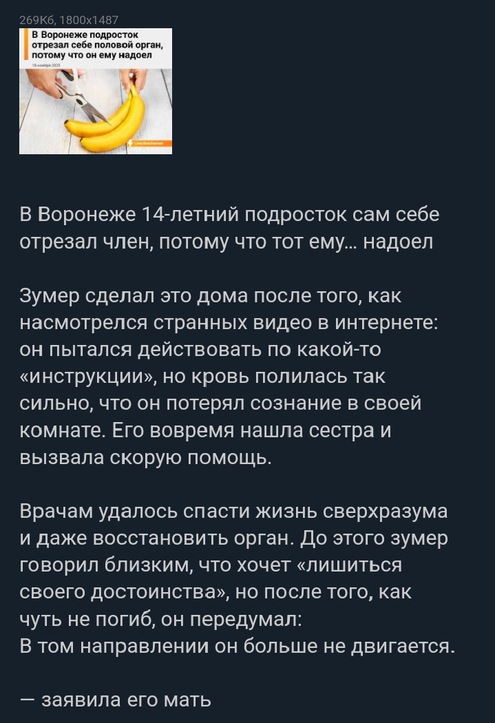 >>10428877 У тебя там нету взрослых рядом? Попроси тебе пересказать. Как альтернатива можешь у жпт/дипсик спросить. У меня нету столько времени чтобы объяснять тексты в тысячи слов каждому долбаебу.
