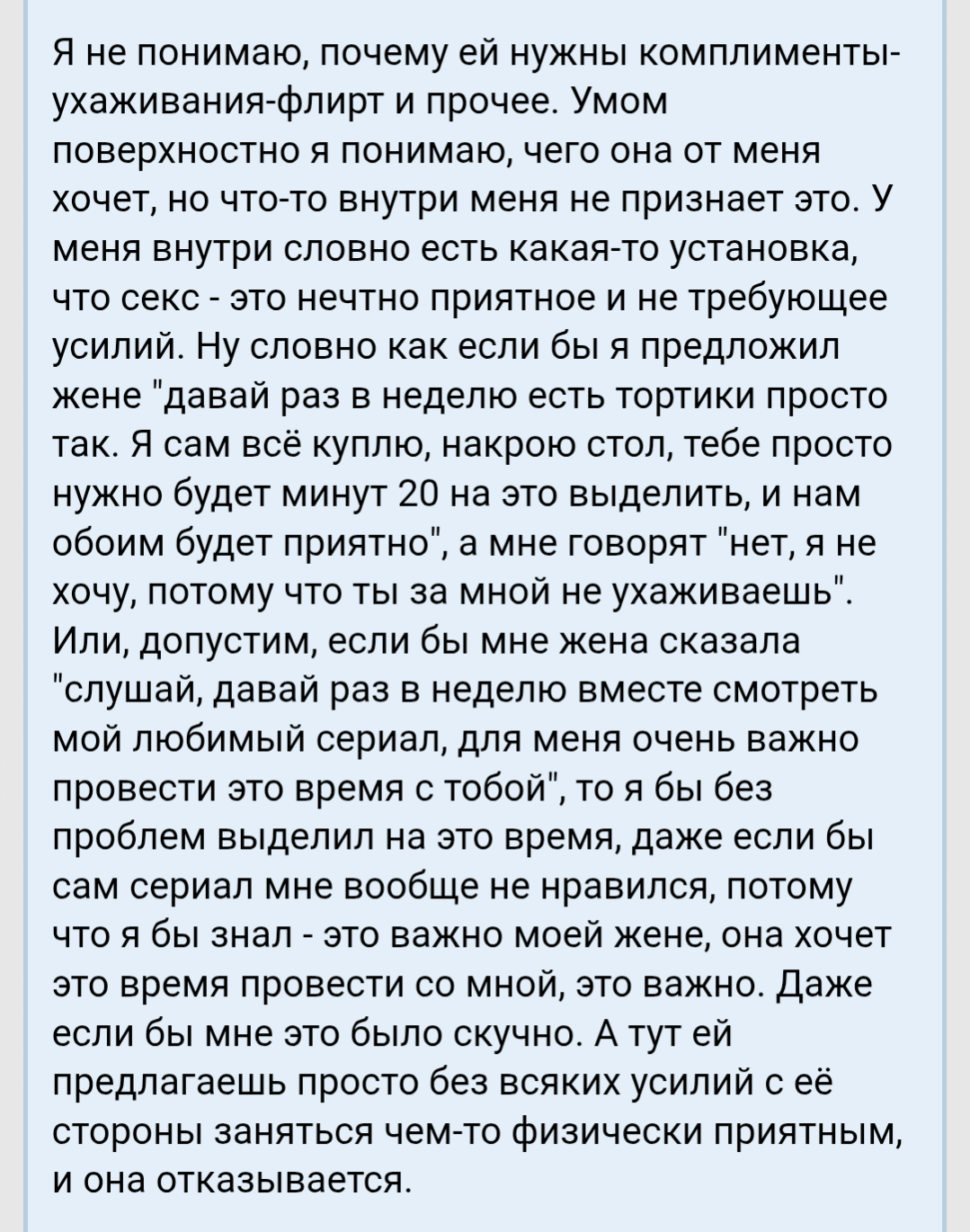 Да и мне особо и не хочется нравится тян потому что "статус" я все равно не ощущаю, а тян я наоборот боюсь. Мол будет типичная жена из ситкома типа "мужчина-козрина чому носки не свернул калачиком как я учила".