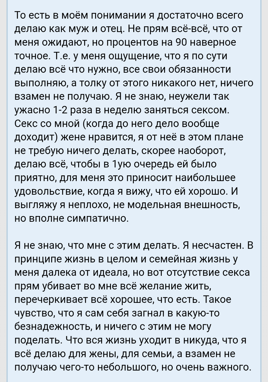 Я уже нашел психолога/психиатра для себя в СПБ. Милфа, в специализации указано тревожное расстройство (чек), проблемы со сном (чек). После нового года пойду, в феврале-марте. Сначала брекеты поставлю в январе, уже долечил всё, что нужно было для начала ортодонтического лечения. Один прием у нее 7к стоит. Иду не для того чтобы принять себя и начать к женщинам подкатывать (на такое я никогда не пойду), а чтобы побороть постоянную тревогу, навязчивые мысли и комплексы, из-за которых я из дома не выхожу и не развиваюсь в профессии. Если раньше у меня были комплексы и тревога только из-за внешности, то теперь еще и комплексы из-за нищебродских 110 тысяч в месяц без каких-либо карьерных перспектив и индексацией зп на 12% раз в год. Чтобы развивать карьеру надо лечить голову серьезно.