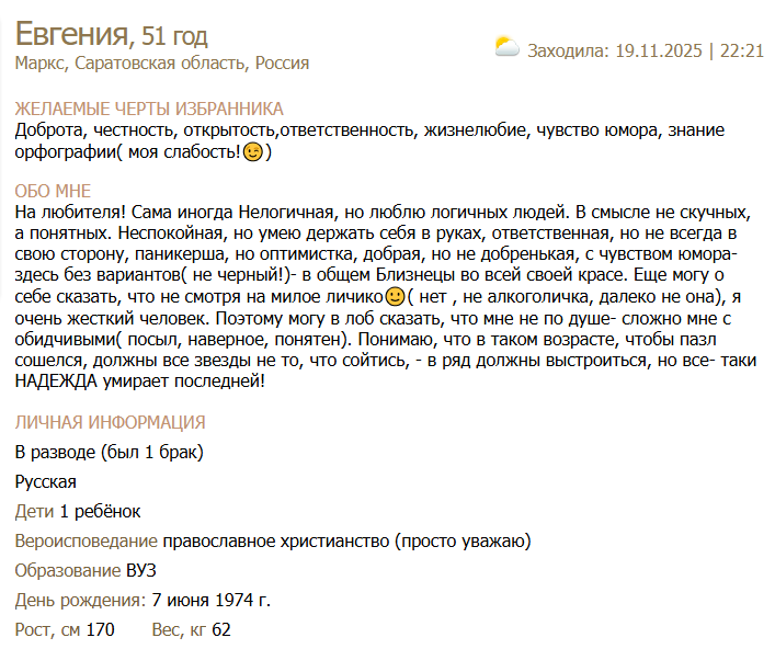 ну и жену нашел на дваче, но я ранее всем отказывал тк ненавижу тупых и амебных женщин, живущих в потреблядстве и стереотипах. она меня понемногу вытаскивает из этого болота цинизма+нигилизма